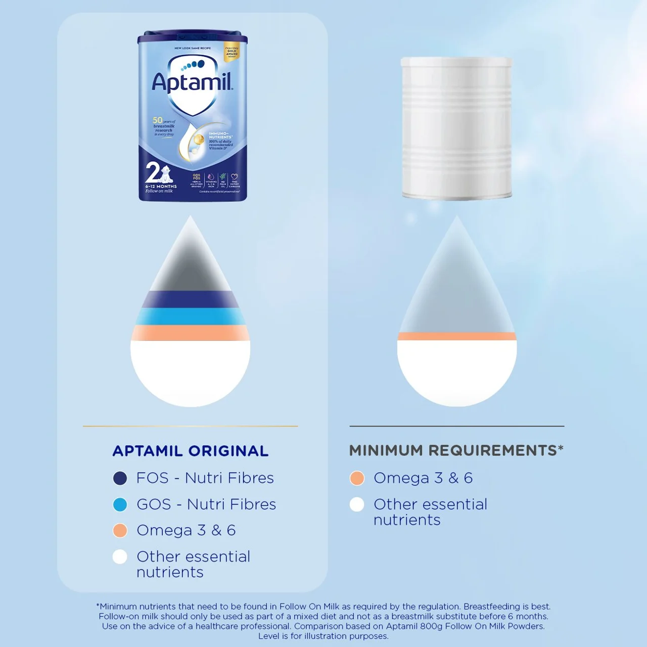 Aptamil Follow On Milk Stage 2 is a professionally prepared baby formula for infants aged 6-12 months that is intended to supplement your baby’s weaning diet and supply critical nutrients for healthy development. Aptamil is based on 50 years of breastmilk research and ensures that your baby receives safe and sophisticated nutrition throughout this critical stage of development.
