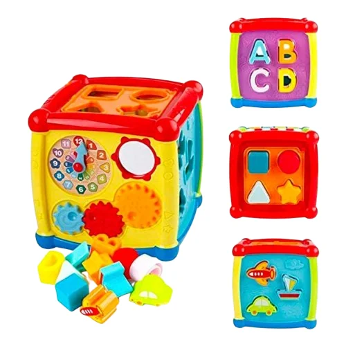 The DODY Baby Activity Cube is a 6-in-1 interactive educational toy that combines multiple fun learning activities in one design. It features a shape sorter, musical piano, gear turners, telephone, clock, and bead maze to keep toddlers entertained while developing essential early skills. Ideal for children aged 1–3 years, this colorful cube promotes sensory exploration, problem-solving, and fine motor development.