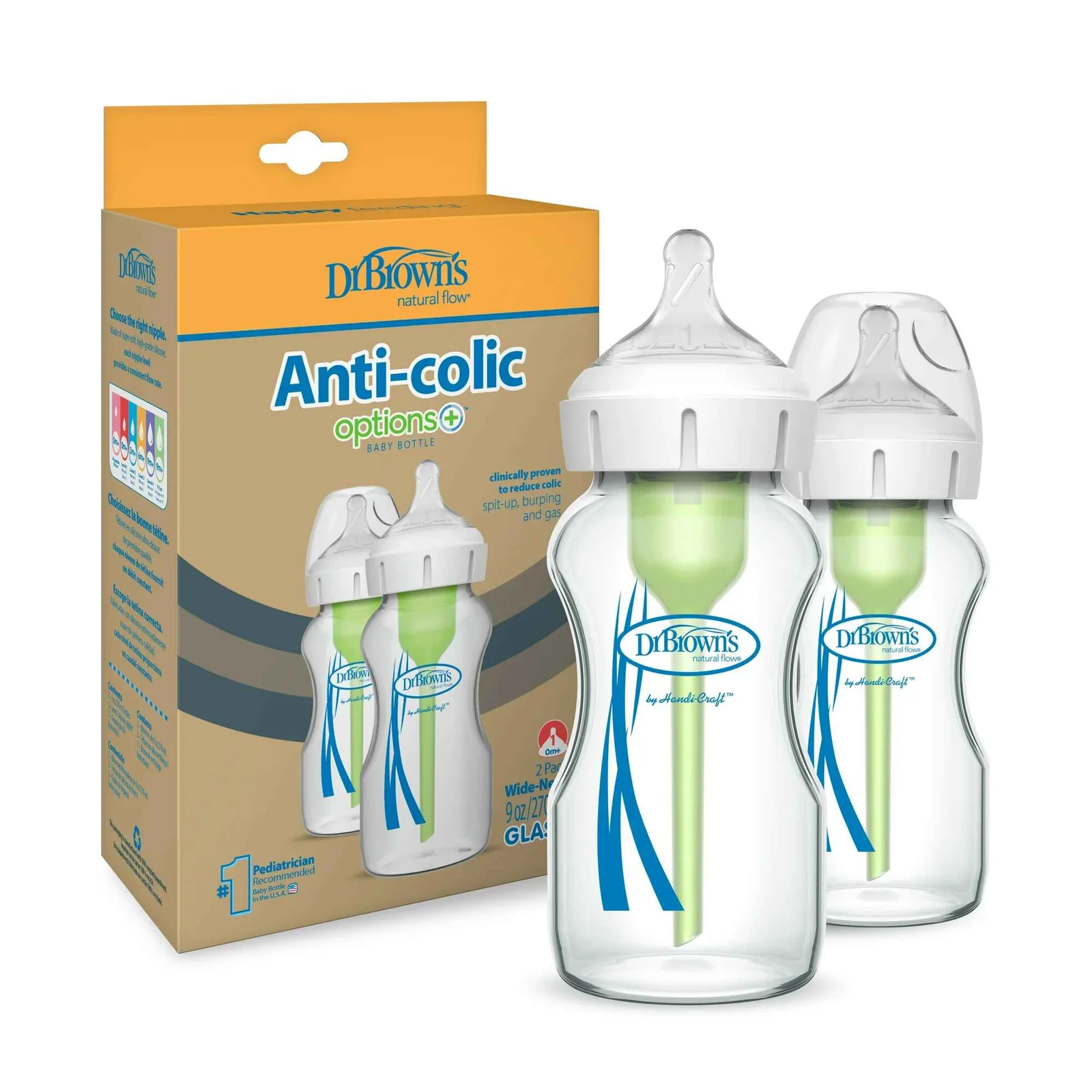 Model: Natural Flow Anti-Colic Options+ Wide-Neck Glass Bottle – 150ml (Twin Pack)
