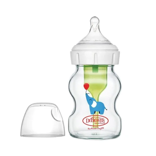 The wide-neck design closely mimics breastfeeding, making it easier for babies to transition from breast to bottle. Made from heat-resistant borosilicate glass, the bottle is durable, hygienic, and safe for all types of sterilization. The Options+ design allows flexible use — with or without the vent system — to suit your baby’s feeding stage.
