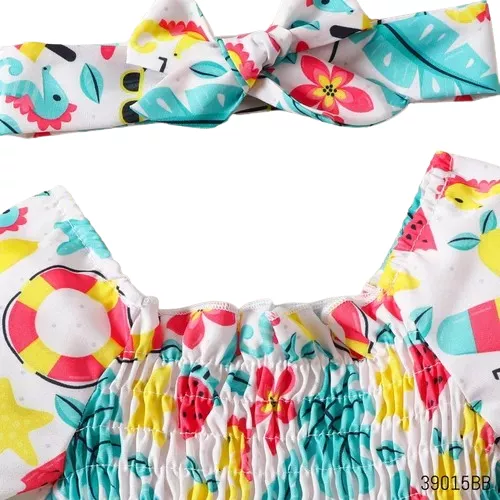 Key Features of Multicolor Fancy Baby Girl Summer Romper with Headband