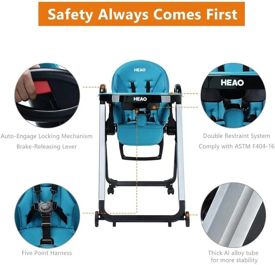 Key Features of HEAO Foldable High Chair Reclining Height Adjustable 4 Wheels
