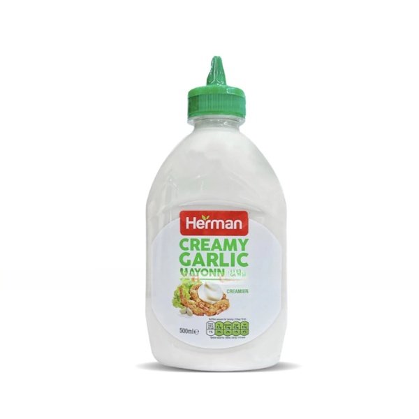 Herman Creamy Garlic Mayonnaise 500ml combines premium-quality mayonnaise with the irresistible taste of garlic for a bold and creamy condiment. The smooth texture and rich aroma make it an excellent choice for sandwiches, wraps, and snacks.