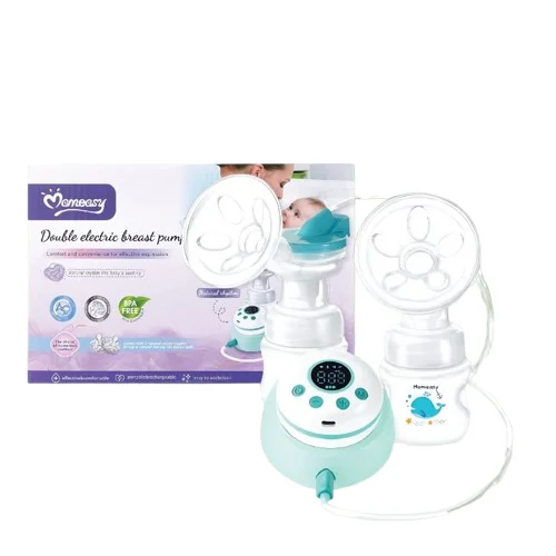 The Momeasy Dual Rechargeable Electric Pump is a user-friendly double breast pump designed to express milk from both breasts simultaneously. Made from BPA-free materials, it comes with two anti-colic bottles and features intuitive digital controls for convenient, efficient, and comfortable milk expression — perfect for mothers of newborns.