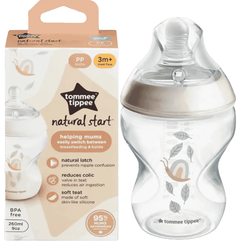 Natural Start PP Bottle by Tommee Tippee (260 ml, medium flow for 3+ months) is designed for smooth, natural feeding as your baby grows. Made from lightweight, BPA-free polypropylene, it ensures safe feeding with a soft silicone teat that mimics the breast for easy latching. The advanced anti-colic valve reduces gas and fussiness, while the ergonomic design makes the bottle easy to hold and clean. It’s a trusted choice for parents transitioning their baby to bottle feeding.