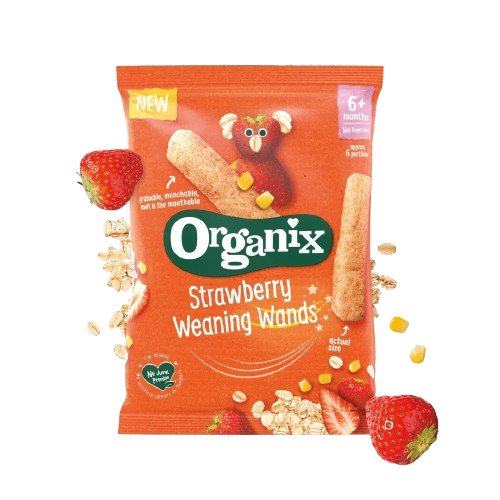 Organix Strawberry Weaning Wands 25g is a healthy snack for babies from 6+ months. Made with organic ingredients, it helps develop self-feeding skills and supports early weaning.