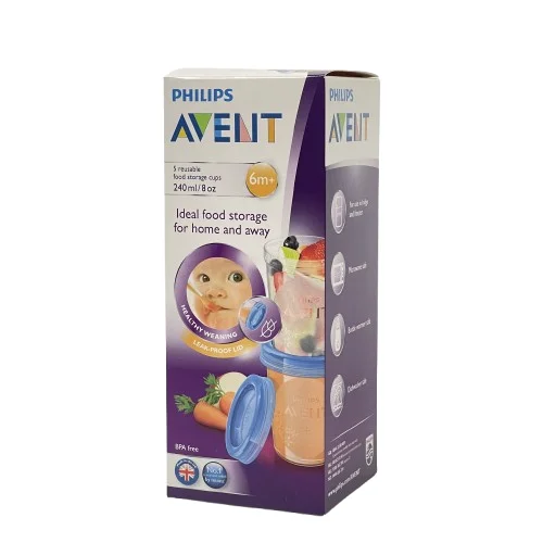 The Philips Avent Reusable Food Storage Cups are BPA-free, durable containers designed to safely store, freeze, and heat baby food. Imported from Indonesia, this 5-cup set is ideal for parents who want a hygienic, eco-friendly, and reusable storage solution.